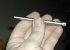 I believe this is the LED-Lenser V16 Chip-Fire; please feel free to correct me if I'm wrong. This is a very thin white LED flashlight that uses two lithium BR435 cells for power. This flashlight is approximately 3 3/4" long and 1/4" wide at its widest point. It has a lanyard hole in the tailcap, so you can affix a lanyard or split ring to this opening if desired.