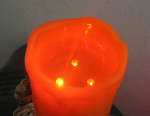 Photograph of the Ghoulish Glow Candle looking down from the top, so you can see the LEDs.