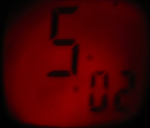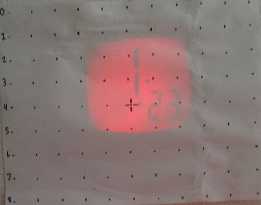 Beam photograph (red time projection LED) on the test target at 12".