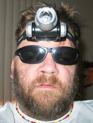 Here's a photograph of the "fagget" testing an LED headlamp.