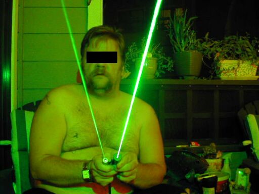 He was testing two green lasers at the time - that's why there are green shafts of light darting toward the top of the photo.