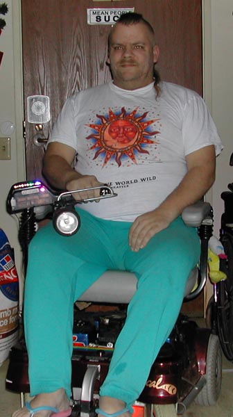 Here's a photograph (late-2003) of the "fagget" with an old fashioned telephone operator's headset on.