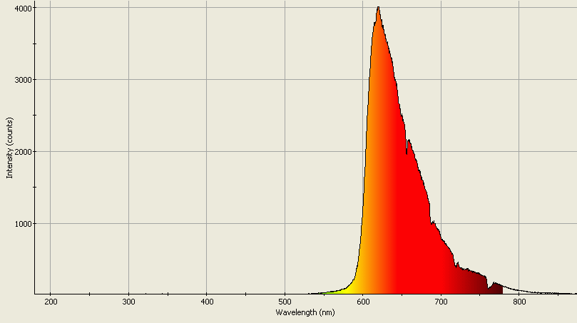 Spectrographic analysis of the bulb (filtered with the red & yellow filters) in the Fright Light.