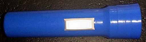 The small plastic flashlight comes in a number of transparent colors, and features a specially made, prefocused white LED lamp and is powered by only a single "AA" cell.