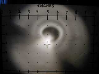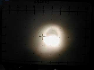 I like the knife (info on the knife above) - but I'm not all that thrilled with the flashlight. The beam is dimmer and yellower than I expected, even with new batteries. And it does not focus worth a sh*t, whether you try to get a spotlight beam, or a wide-angle flood. The pictures below should tell all.
