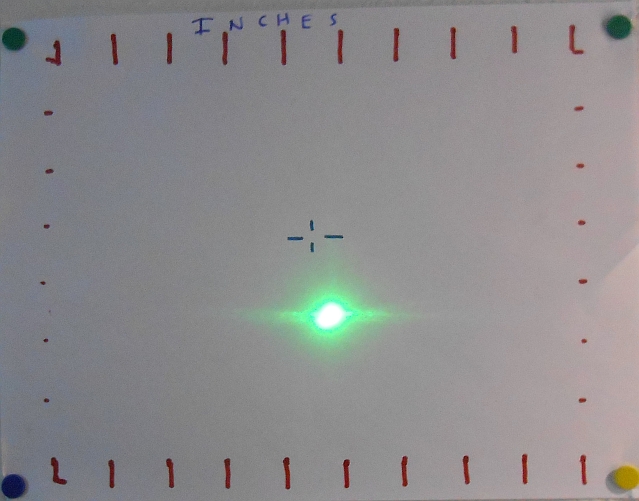 Beam terminus photograph on a wall at ~8 feet.