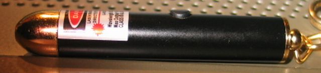 This is a green DPSS (diode pumped solid state) laser pointer that fits on your keychain!!! This is the smallest green beam laser I've come across to date (08-22-07) (the previous small record holder was this one).