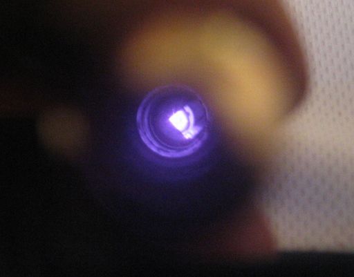 Note the purplish-white color; indicative of 808nm NIR radiation from the pump diode.
