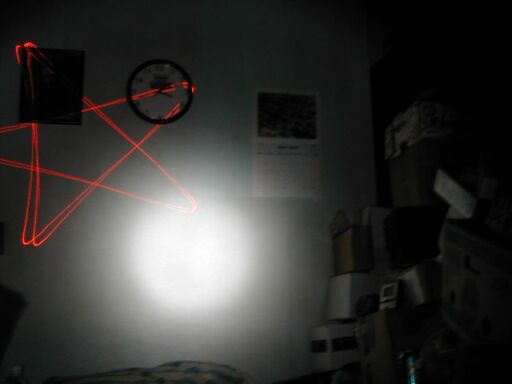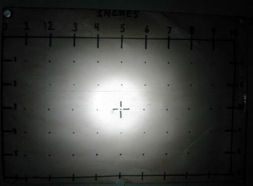 The light produced is a pure white, with no obvious yellow, blue, purple, or "rotten cat urine green" tints to it. The beam does have a very, very, VERY slight "doughnut" configuration to it, in that the center of the hotspot is very, very, VERY slightly dimmer than the edges. This is perfectly normal with a 5 watt Luxeon and reflector combination though, and is nothing whatsoever to be concerned about.