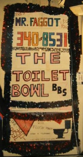 The BBS represented here is The Toilet Bowl BBS, which was a BBS that I was the sysop of from 07-21-89 through 07-21-99.