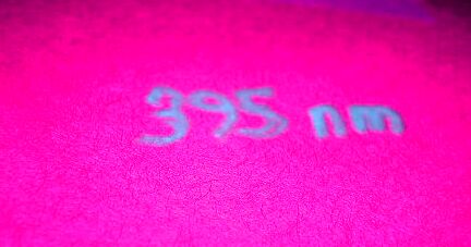 You should be able to see "395nm" written on this envelope in the pen's normally-invisible ink.