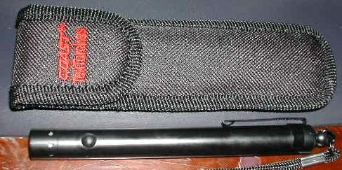 The TekTorches V12 is a Zwiebruder (LED-Lenser Optoelectronics) product, marketed and sold by Coast Cutlery. It is a powdercoated black aluminum flashlight with a bright white LED in one end, feeding from 3 size N cells, which it comes with, already installed in the flashlight. A wrist lanyard is attached at the other end, so you can carry the flashlight around that way if you wish. The V12 comes with a belt holster with a velcro closure.