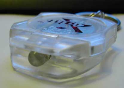 The X-Light features a digital switching system. You push a button, and a small IC inside turns the LED on and off. No need to keep squeezing. This is definitely the Cadillac of economy priced keychain LED lights.
