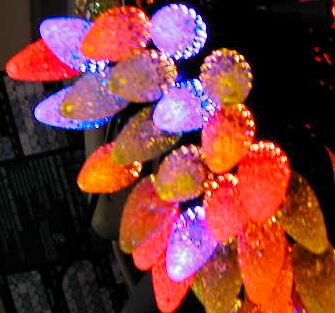 Cheery, colorful lights include orange, true-green, blue, purple, and white