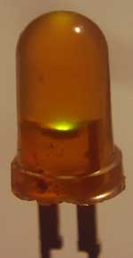 (Update 04-12-08): I've been informed by an LED expert on the east coast who's work I implicitely trust that this LED may in fact be one of those wily & elusive (and fairly rare) two-chip yellow LEDs!!! This LED uses a a GaP red chip and GaP green chip together (connected in parallel) to make yellow.